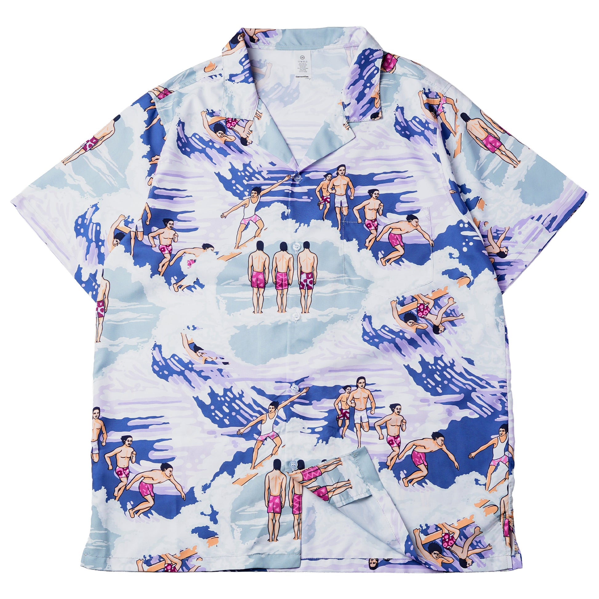 This is the shirt worn by Tim Roth’s “Pumpkin” (aka Ringo) in Pulp Fiction - yes, that Jules. A surprisingly laid-back look for a hitman, this print is packed with synchronized swimmers, beach bros, and mid-wave action, all in a surreal pastel palette. It’s weird, it’s specific, and it’s 100% Tarantino.