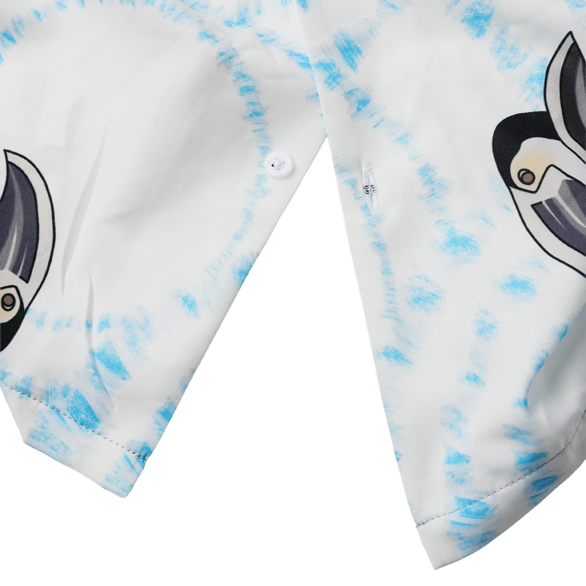 Worn by Brad Pitt as Tyler Durden, this surreal toucan-print shirt is one of the most unforgettable looks in Fight Club. With spinning tie-dye splashes, cartoonish tropical birds, and a stark white base, it’s the kind of shirt that says, “I reject your reality, and I’m doing it in style.”